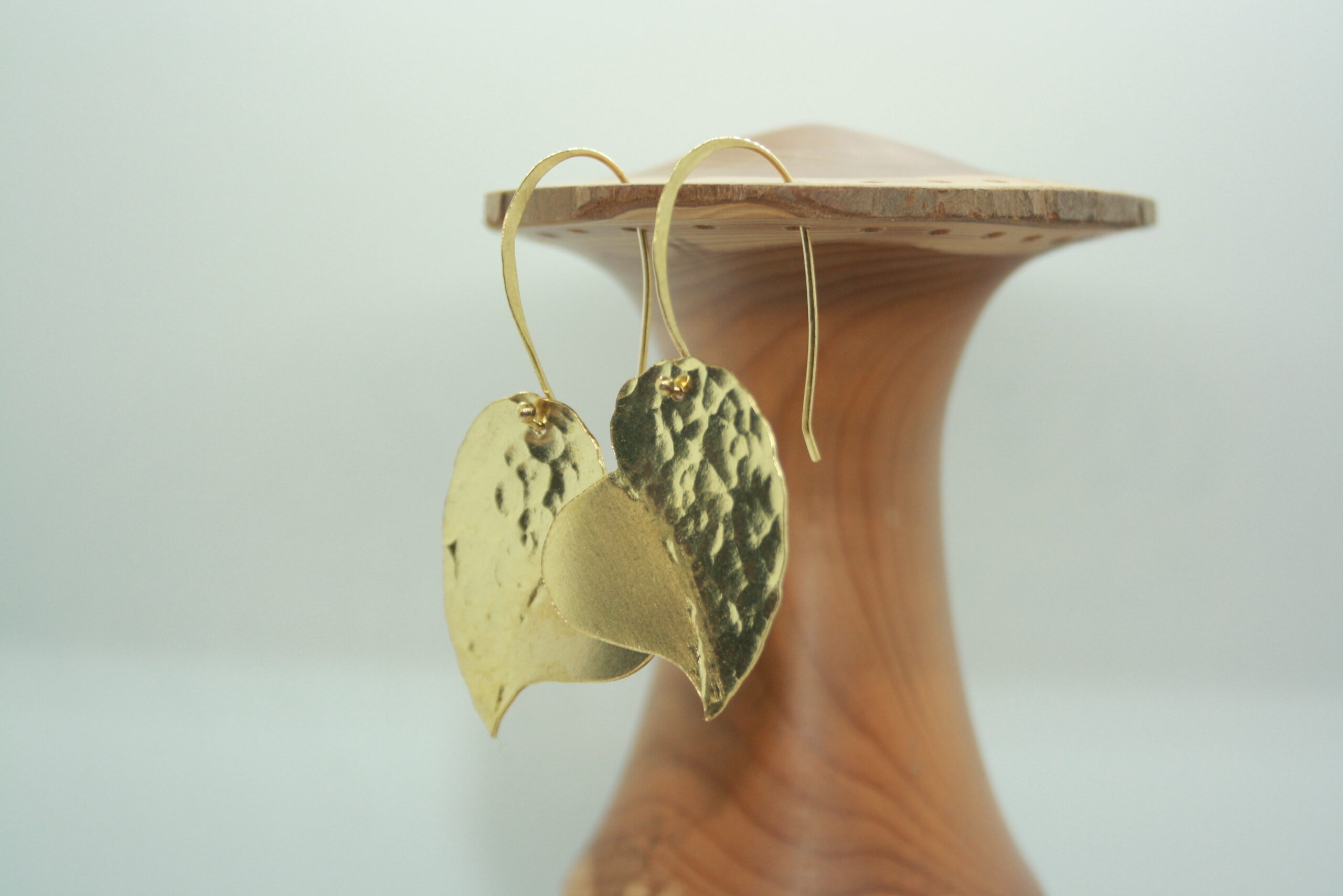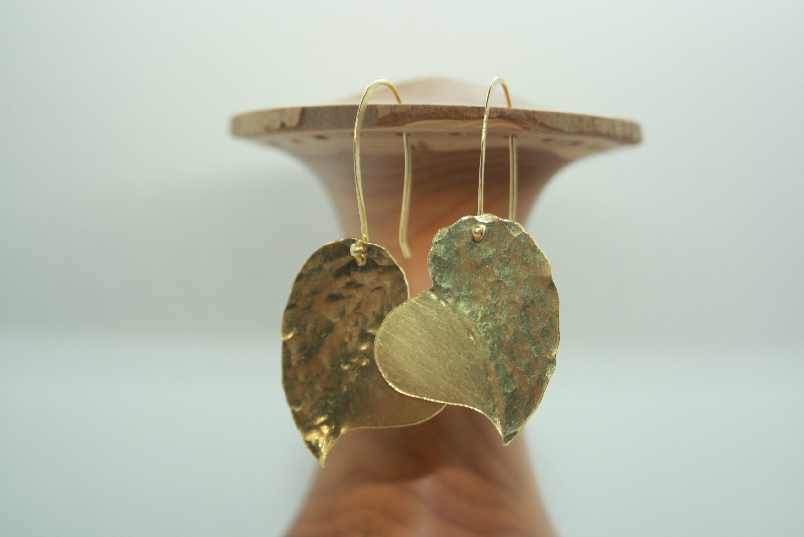 Elégantes boucles d’oreilles en laiton. Forme cœur. Martelées.